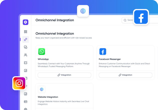 Multi-channel integration (WhatsApp, Facebook, Instagram, and web chat)